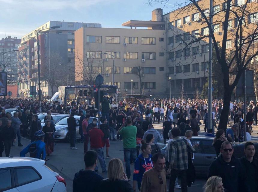 Kamion sa kojeg su se govornici obraćali takođe je napustio ulicu Bulevara despota Stefana u kojoj se nalazi policijska stanica.