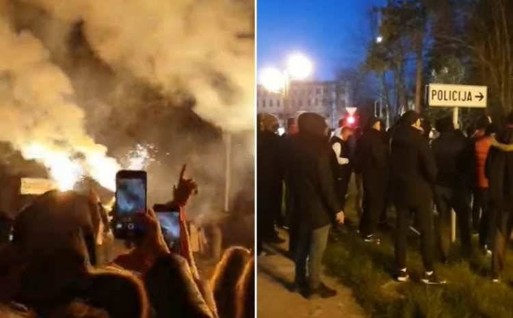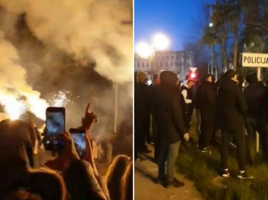 Više desetina građana Nikšića protestiralo je večeras ispred zgrade CB Nikšić, gdje su bili privedeni neki učesnici današnjeg protesta na Bogetićima.