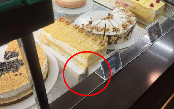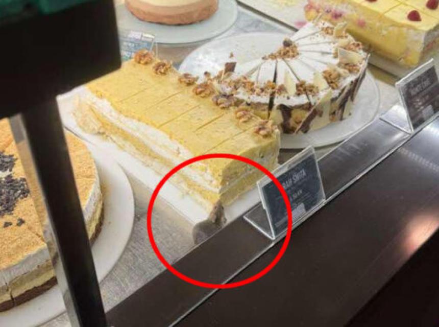 Na fotografiji koja je nastala u srijedu, 13. novembra, se vidi miš u rashladnoj vitrini, u kojoj su smješteni kolači za prodaju.