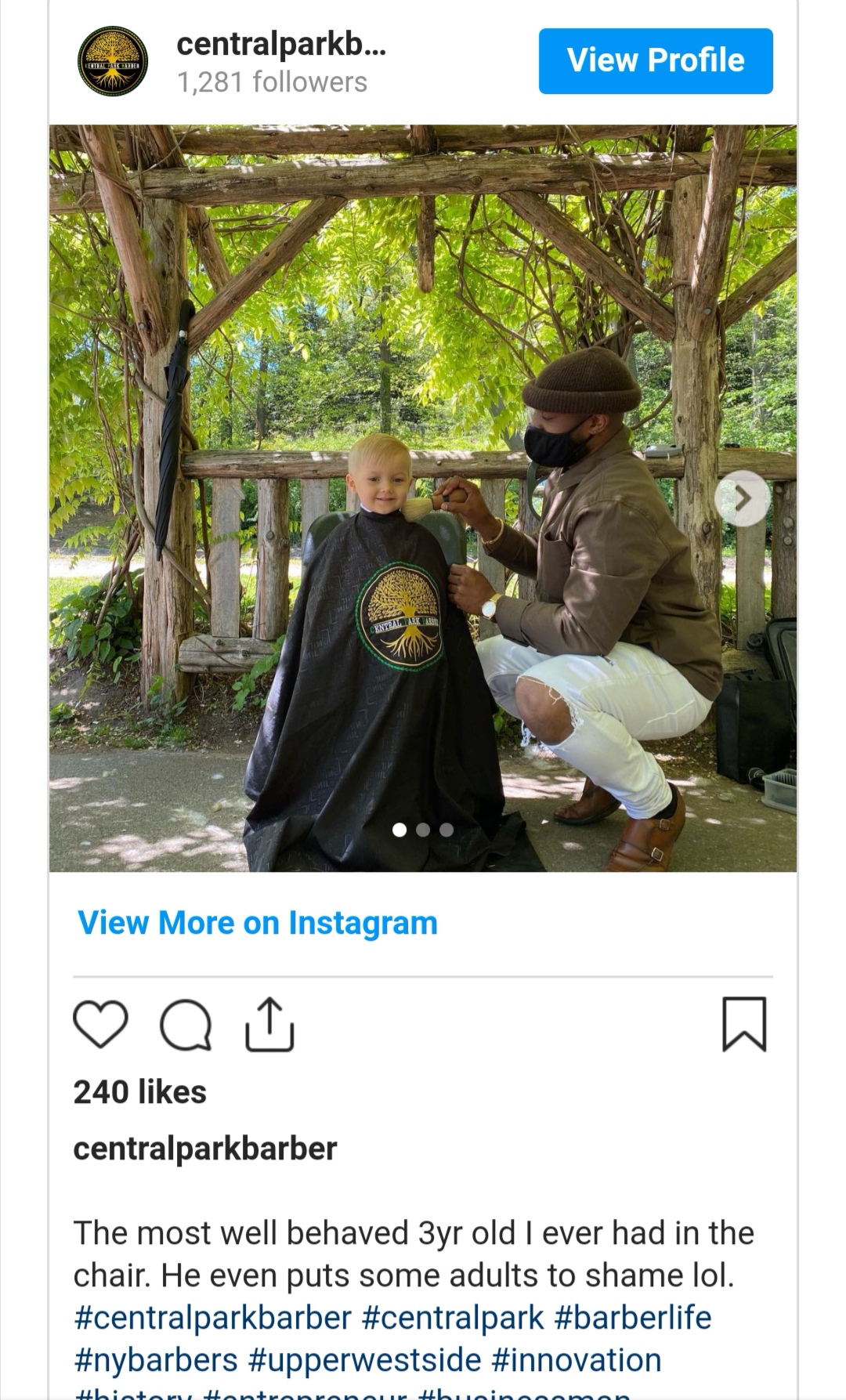 Džejms je besplatno šišanje u parku počeo nuditi još u maju 2020. godine nakon što su zbog pandemije zatvoreni svi njujorški saloni, uključujući i onaj u kojemu je radio. Nadao se da će na taj način svojim sugrađanima podići duh u teška vremena i bio je uvjeren da će mu zahvalnost iskazati donacijama.