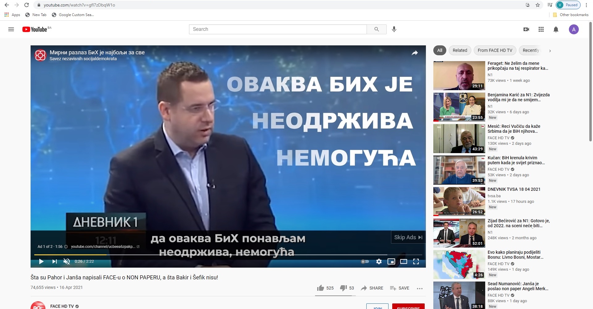 Zbog direktno iskazane tendencije prema rušenju Ustavnog poretka Bosne i Hercegovine te organizirane plaćenje medijske kampanje na društvenoj mreži youtube, Vead Gačanović, generalni sekretar Nezavisnog bloka je Centralnoj izbornoj komisiji Bosne i Hercegovine prijavio Savez nezavisnih socijaldemokrata.
