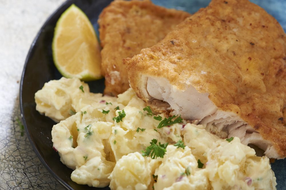 1. Odlediti filete, posoliti ih i ostaviti u rešetci da se ocijede. Uvaljati svaki komad u brašno pa u umućena jaja. Na ostatak brašna dodati prezlu.