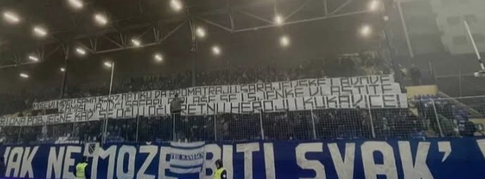 Navijačka grupa "Manijaci", najvatrenija podrška FK Željezničar, ponovo je skrenula pažnju javnosti oštrom porukom ispisanom na transparentu, koju su istaknuli tokom prekinute utakmice protiv Širokog Brijega.