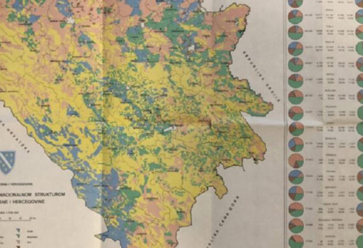 Ovako koncipirana zemljišna karta pruža uvid u teritoriju Republike Bosne i Hercegovine, naseljenost stanovništva po nacionalnosti, te zajednički prostor općedruštvene (državne) svojine.