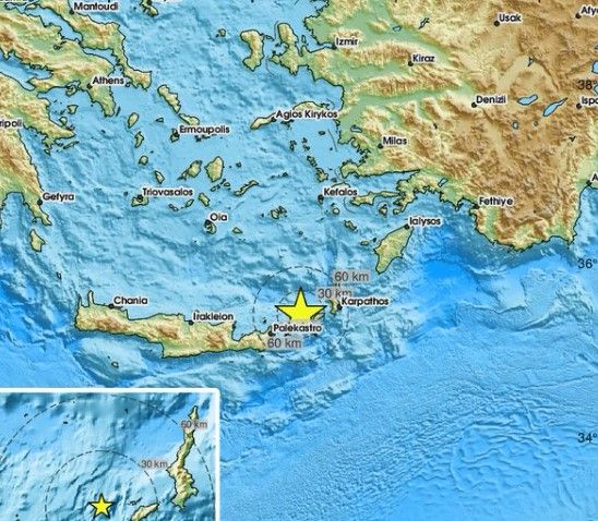 Prema raspoloživim podacima, epicentar potresa lociran je na 139 kilometara sjeveroistočno od Irakliona.