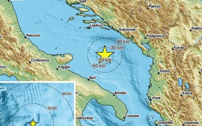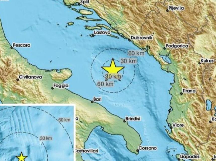 Potres je bio na 150 kilometara jugozapadno od Podgorice i 103 kilometara sjeveroistočno od Barija.