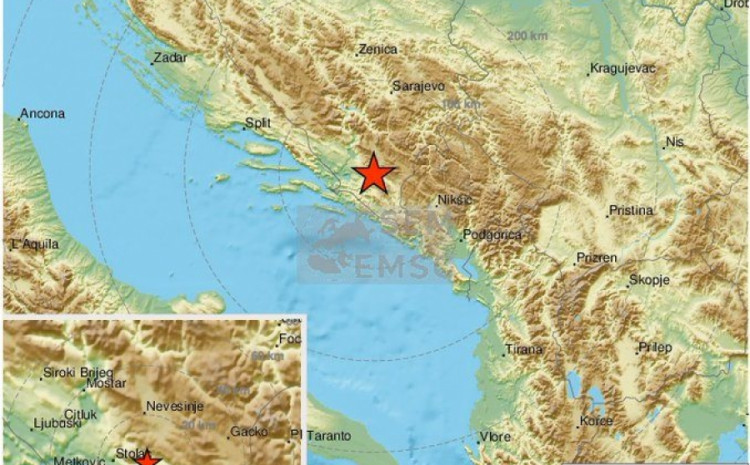 Kako navodi seizmološki servis EMSC, epicentar potresa bio je 17 kilometara istočno od Stoca, na dubini od 10 kilometara.