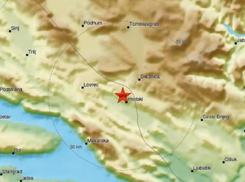 Zemljotres jačine oko 4 stepena po Richteru pogodio je sinoć Imotski, a njegov utjecaj mogao se osjetiti i u većem dijelu Dalmacije i zapadne Hercegovine.