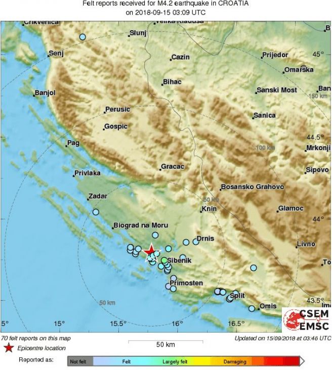 Prema prvim podacima jačina zemljotresa iznosila je 4,2 Richtera s epicentrom tri kilometra sjeverno od Vodica i osjetio se na širem području, navodi se na portalu Infovodice.