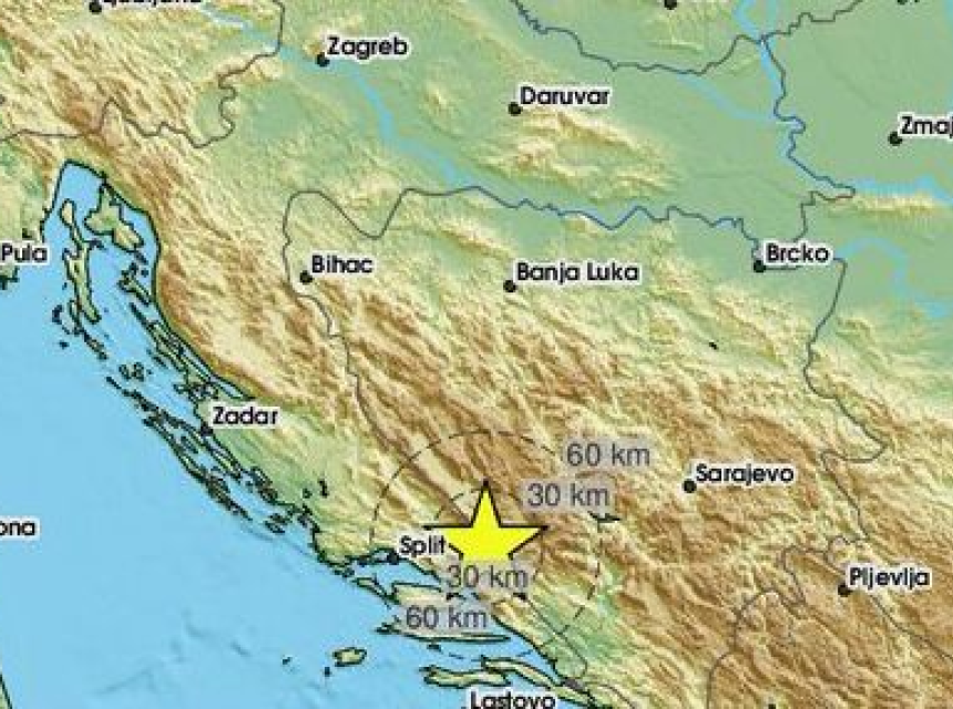 Epicentar je bio na 48 kilometara od Splita na dubini od devet kilometara.