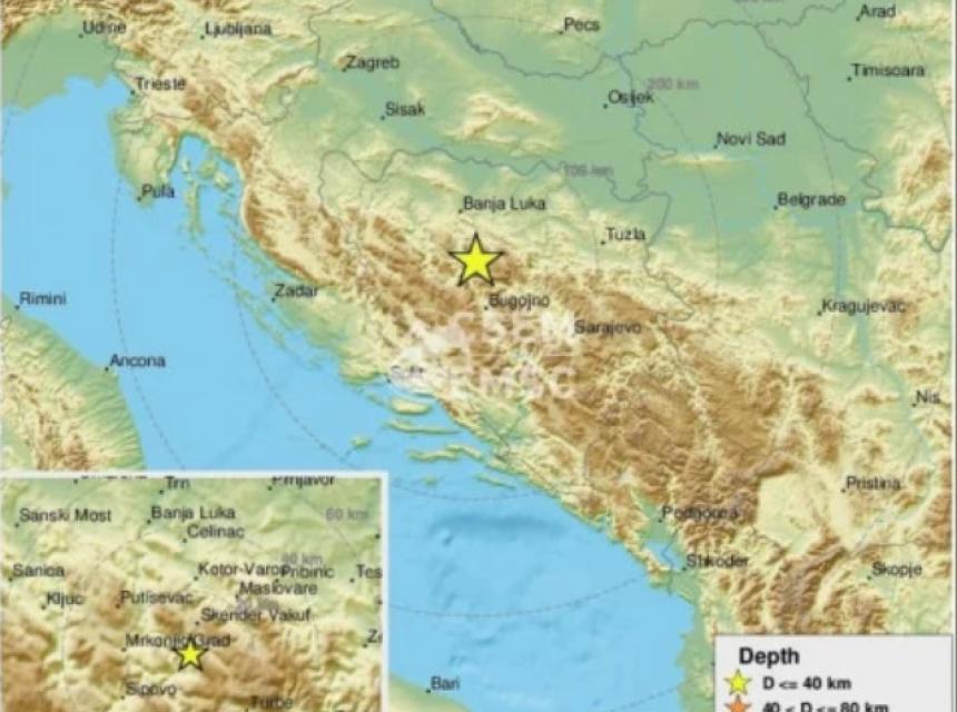Epicentar zemljotresa, prema EMSC, bio je 21 kilometar istočno od Mrkonjić-Grada.