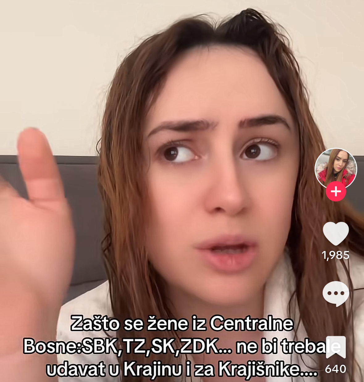 Na društvenim mrežama, tačnije na platformi TikTok, nedavno se pojavila izjava jedne žene koja je izazvala žestoke reakcije, posebno među Krajišnicima. U svom video klipu, žena je otvoreno prozvala muškarce iz Krajine, navodeći kako, prema njenim riječima, žene iz Srednje Bosne, Zeničko-dobojskog i Sarajevskog kantona ne bi trebale stupati u brak s Krajišnicima.