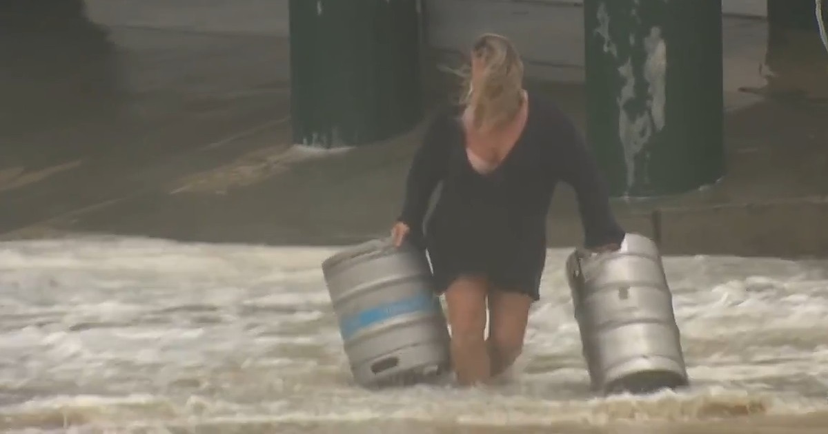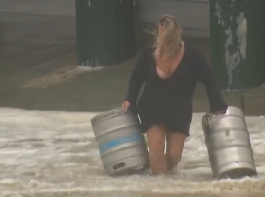 Tokom poplava u Australiji u decembru prošle godine, žena iz Currumbina na Gold Coastu u Queenslandu riskirala je vlastiti život skočivši u uzburkani okean kako bi spasila dvije bačve piva koje je voda pokušala odnijeti.