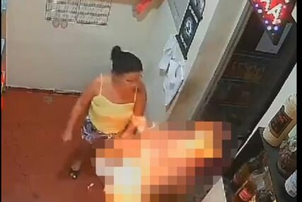 Nadzorna kamera je zabilježila trenutak kad ga šokiranog čovjeka najprije polila tečnošću koju je donijela u flaši, a potom i zapalila upaljačem.