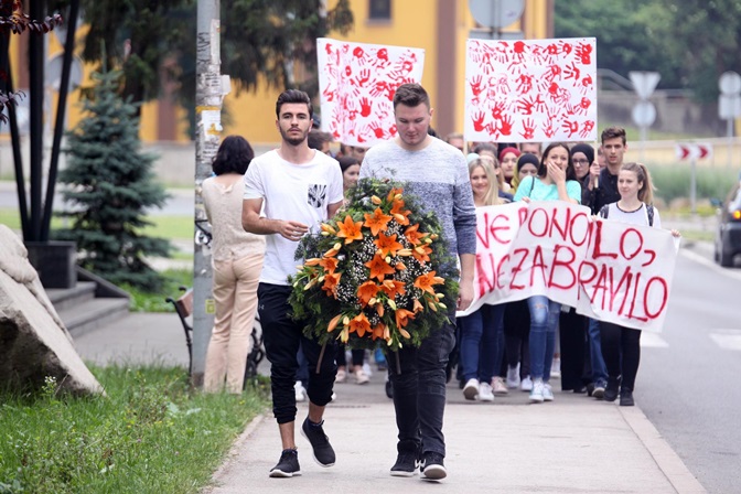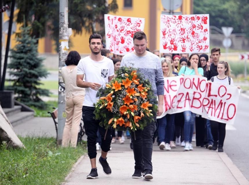 Studenti Pravnog fakulteta u Zenici, s trakama na svojim rukama, te natpisima da se nikada nikome ne ponovi, ali i ne zaboravi ovaj datum, te sa otiscima 102 ruke kao podsjetnika na 102 djece ubijene u Prijedoru, održali su mirnu šetnju od zgrade fakulteta do Spomen-obilježja Kameni spavač gdje su položili cvijeće te minutom šutnje i učenjem Fatihe podsjetili se na stradanje Prijedorčana.