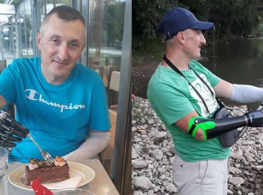 „Odobreno mi je to, firma mi je odobrila ta sredstva tako da sam otišao i bio sam dva mjeseca u Minhenu u kliničkom centru. Tu su vrhunski doktori. Direktor klinike je bio glavni na operaciji. Dakle iz lijeve noge mi je izvađen mišić i presađen na desnu ruku. Kada je to urađeno i kada je sve završeno, onda sam išao ponovo u Njemačku i uradio tu protezu“.