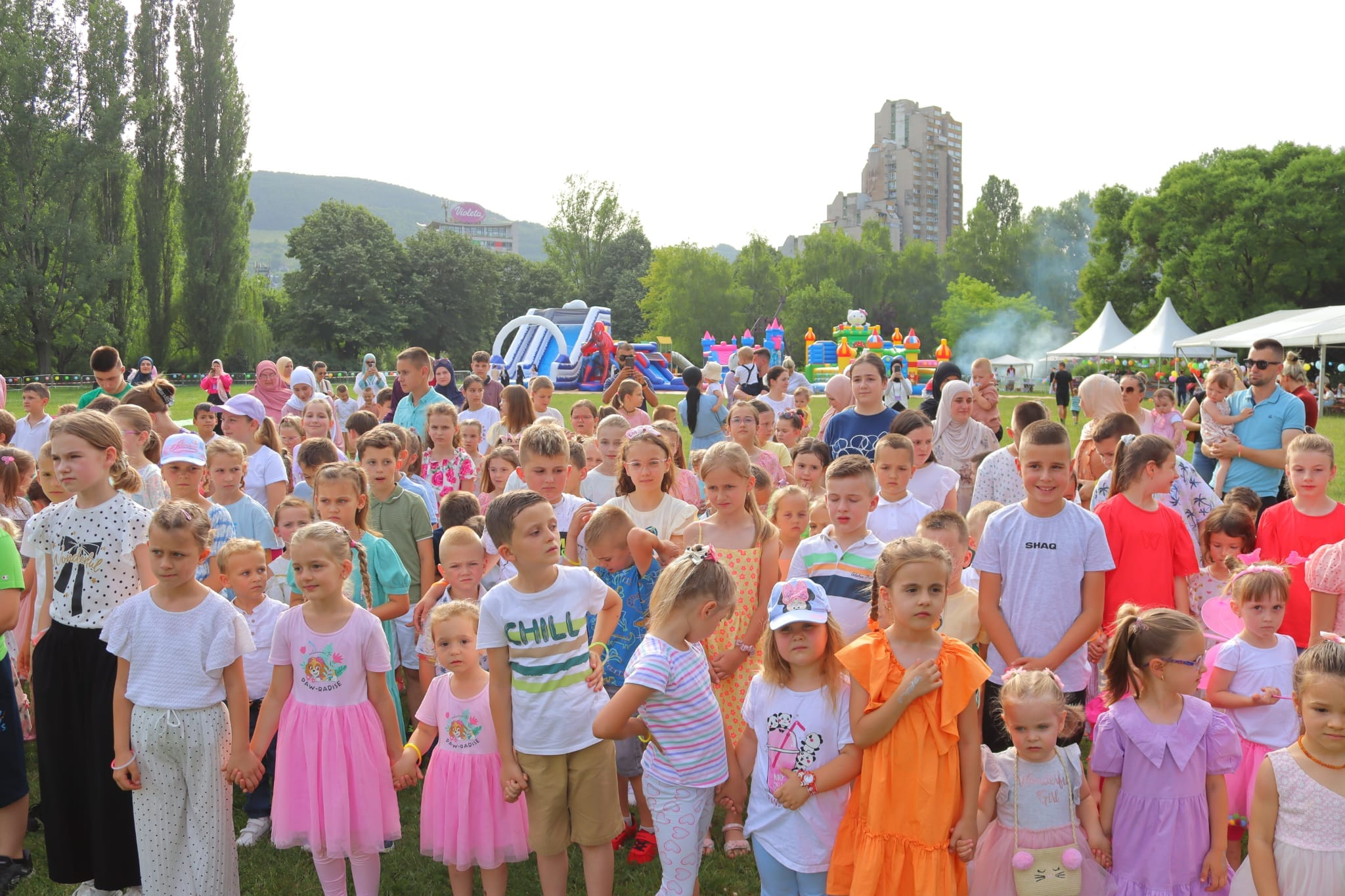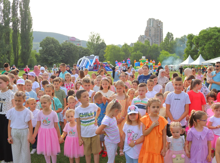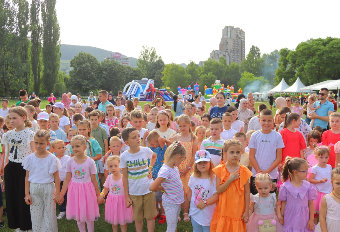 Tako su danas na Kamberovića polju u Zenici više od stotinu mališana s roditeljima uživali u brojnim sadržajima od crtanja i pisanja, pravljenja palestinske zastave s otiscima ruku, jahanja konja, uživanja u toboganima, roštiljskim specijalitetima, voćem i slatkišima, ali i bajramskim paketićima i gostu iznenađenja Arminom Muzaferijom.