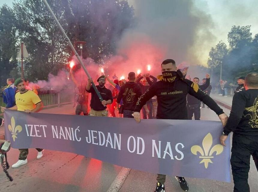 Uz bakljadu i navijanje, skandirali su ime heroja odbrane BiH, legendarnog komandanta Izeta Nanića, čije spominjanje nije tolerisano na premijerligaškim utakmicama.