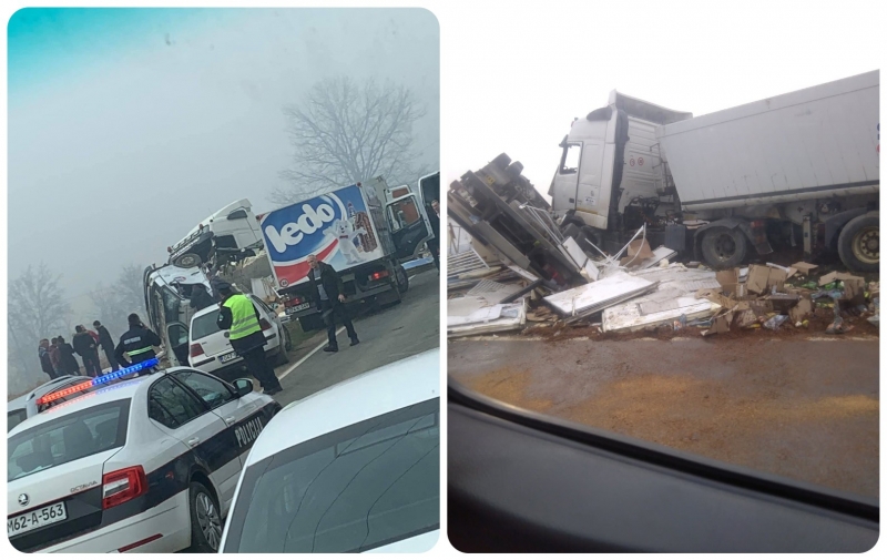 Saobraćaj je zbog nesreće, koja se dogodila oko 8 sati, jedno vrijeme bio potpuno obustavljen, a trenutno se odvija otežano, jednom trakom naizmjenično.