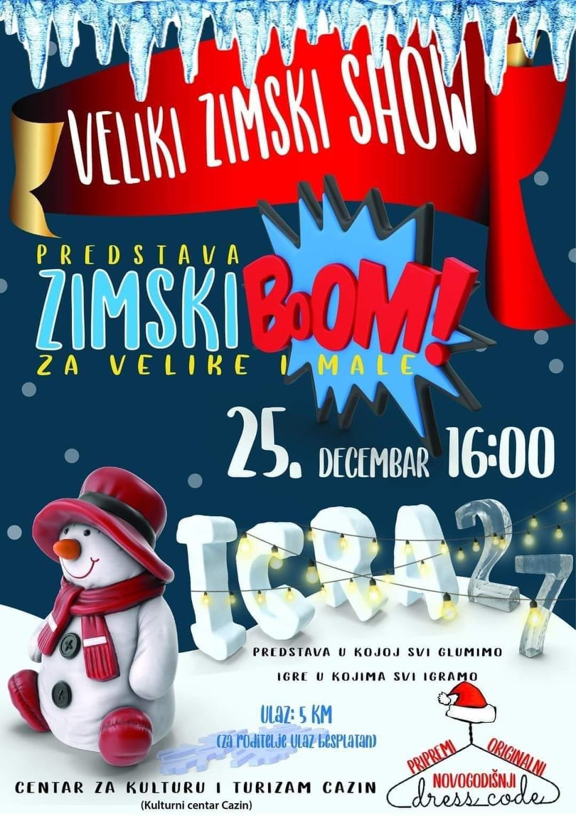 U okviru "Cazinske zime", Udruženje Igra 27 organizira BOOM predstavu za velike i male. U subotu, 25.12.2021. godine u 16h, na daskama koje život znače, odvijaće se prava mala zimska čarolija.