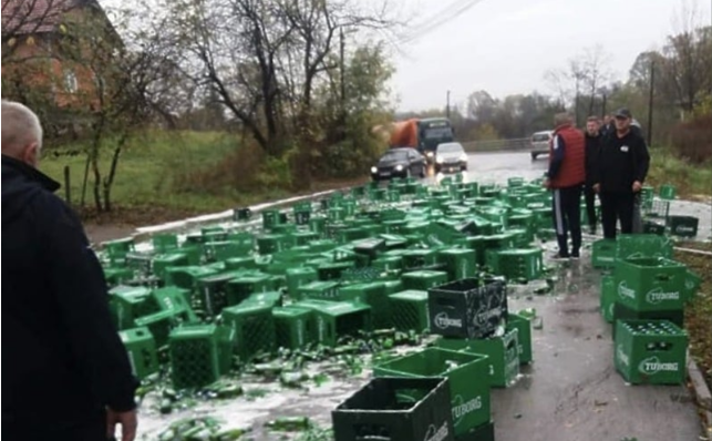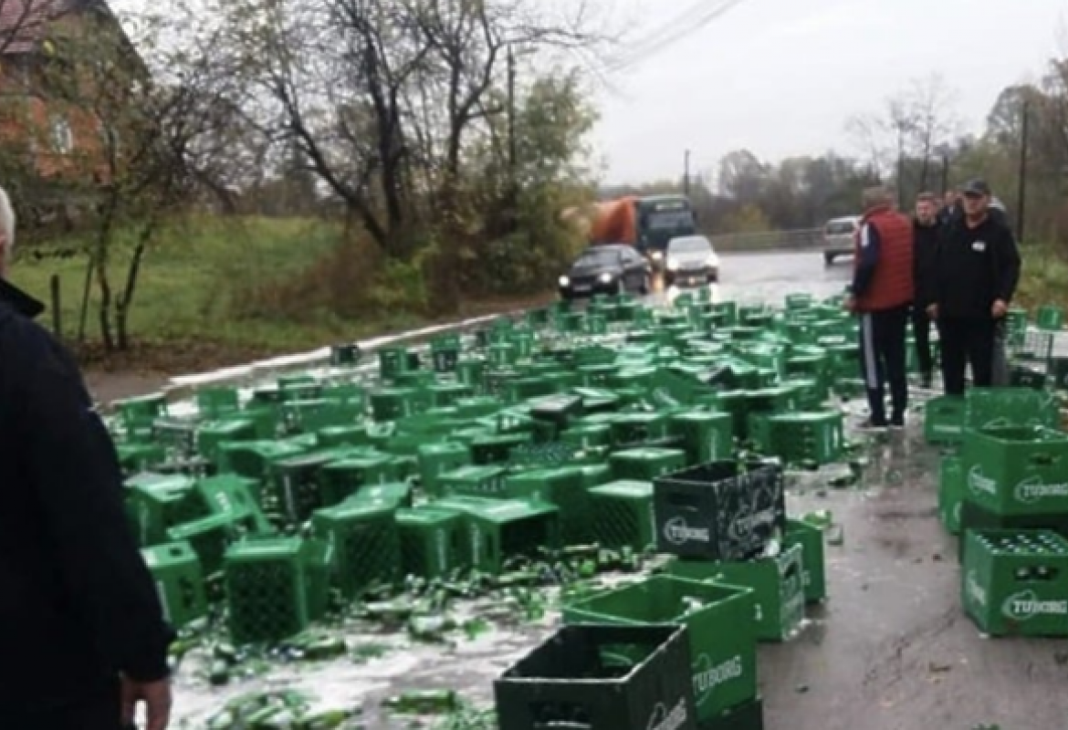 Tom prilikom, veći broj gajbi s pivom završio je na cesti, što je stvorilo probleme u odvijanju saobraćaja.