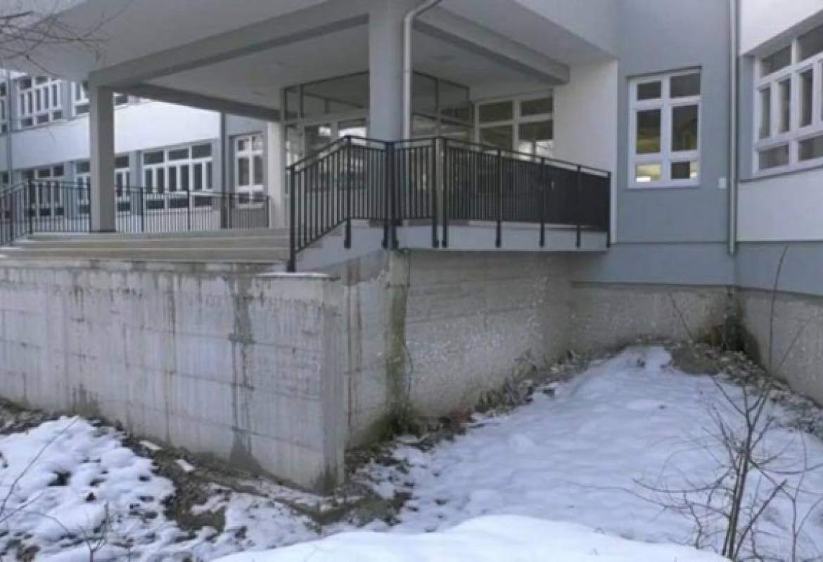 Što se tiče glavnog ulaza, koji je kako se navodi 2 metra iznad zemlje, to je također neistina, jer je cijeli objekat po projektu podignut na visinu 140 cm od tla, kako bi se izbjegle česte poplave koje su pratile sadašnji objekat škole. Nasuti visinu od 140 cm ili izgraditi stepenice te visine nije nikakav problem, te također spada u domen propusta (ako je propust) projektanta i imalo se sasvim dovoljno vremena da se riješi, jer taj problem nije nastao jučer.