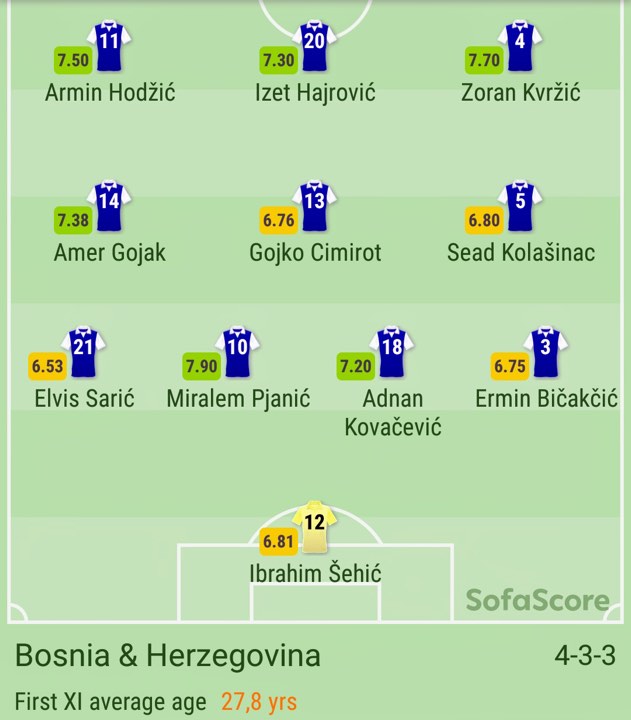 Tim je isti kao protiv Finske u Zenici, a jedina je izmjena što od početka starta Izet Hajrović umjesto Edina Višće.