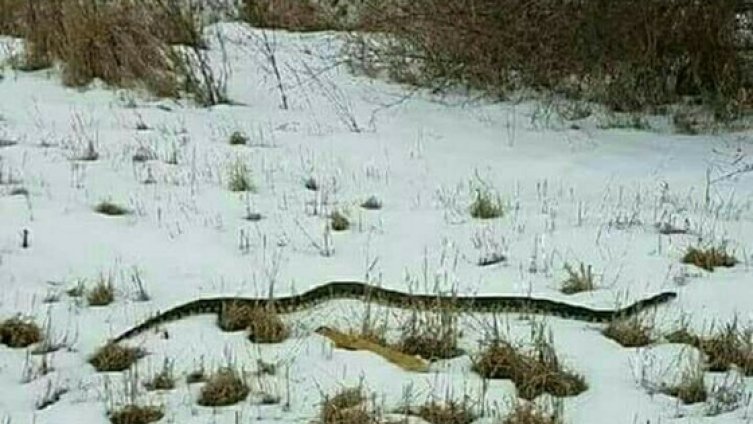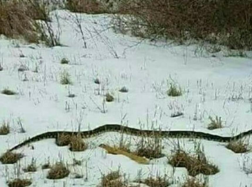 Zmija koja se u jutarnjim satima pojavila na snježnoj površini u blizini jedne kuće u beranskom selu Petnjik iznenadila je mještanku tog sela, koja je na nju naišla.