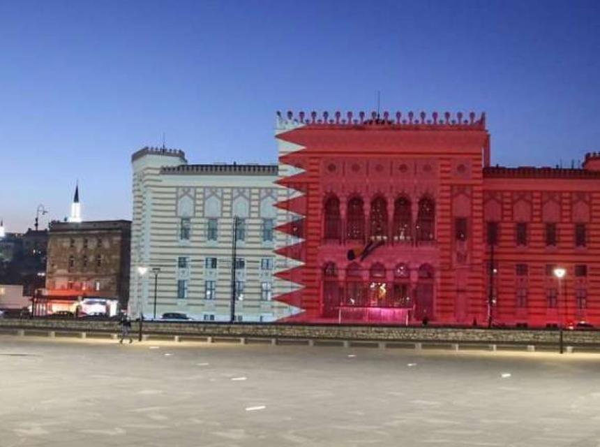 U znak zahvalnosti za pomoć Bosni i Hercegovini u borbi protiv koronavirusa, večeras je sarajevska Vijećnica bila oslikana u bojama zastave Katara.