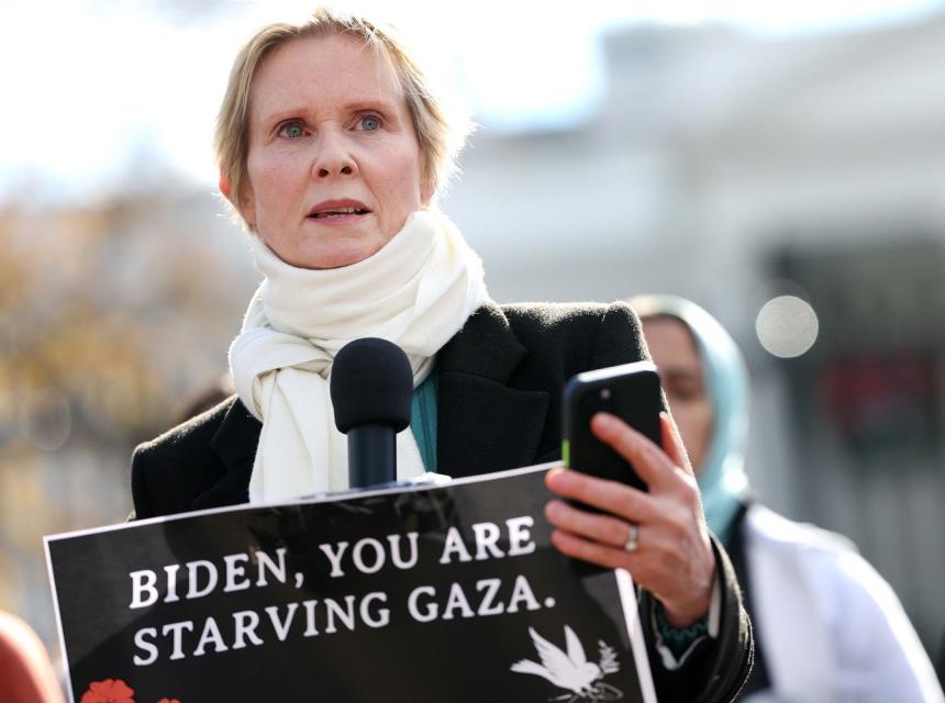 Zvijezda serije "Seks i grad" Sintija Nikson (Cynthia Nixon, 57), pridružila se grupi progresivnih zastupnika na protestnom skupu ispred Bijele kuće u ponedjeljak, gdje su pozvali na trajno izraelsko primirje u Gazi.