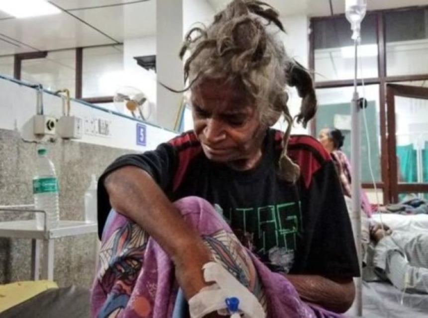 Nesretna žena, čije ime nije saopšteno, toliko je izgladnjela da ne može ni da hoda ni da raspozna ljude.